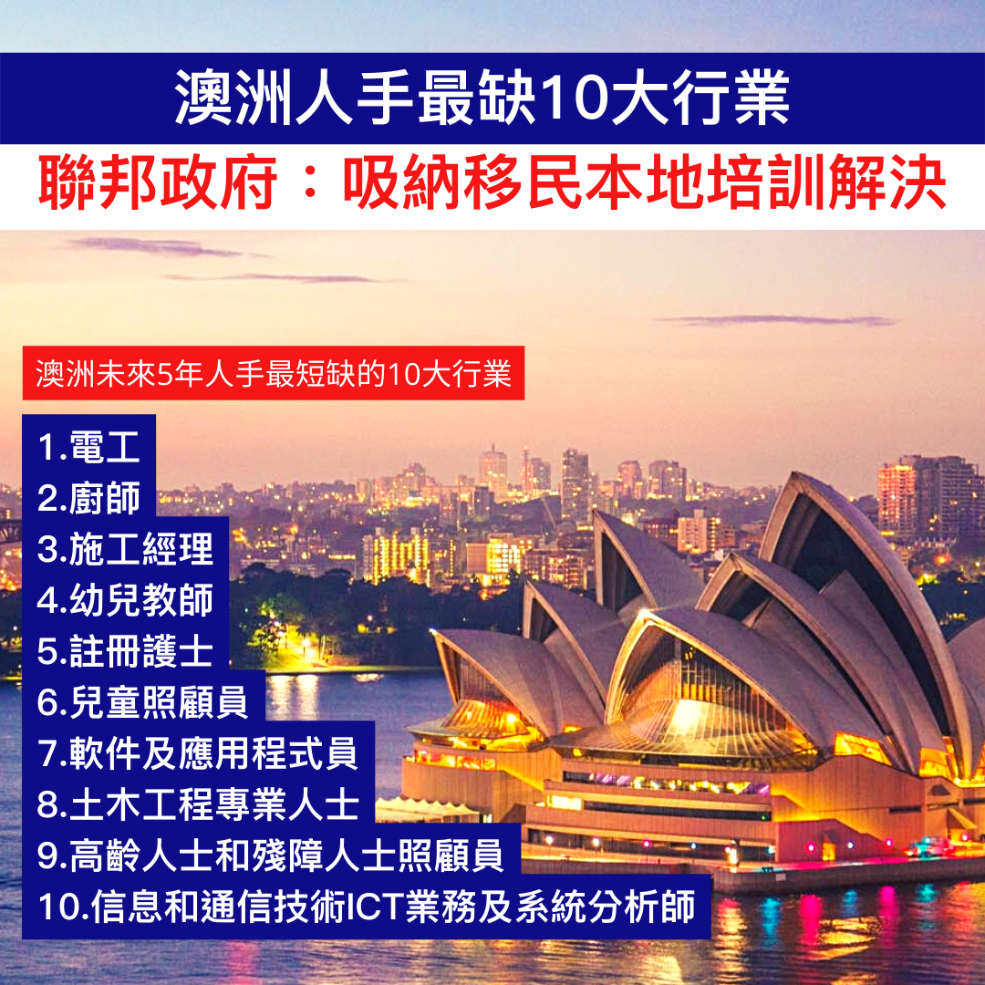 【澳洲】全澳人手最缺10大行業 澳洲政府:吸納移民本地培訓解決