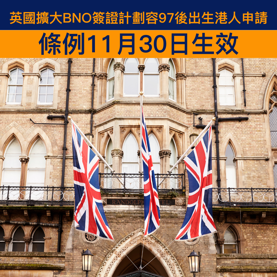 【英國】擴大BNO簽證計劃容許97後出生港人申請 條例11月30日生效
