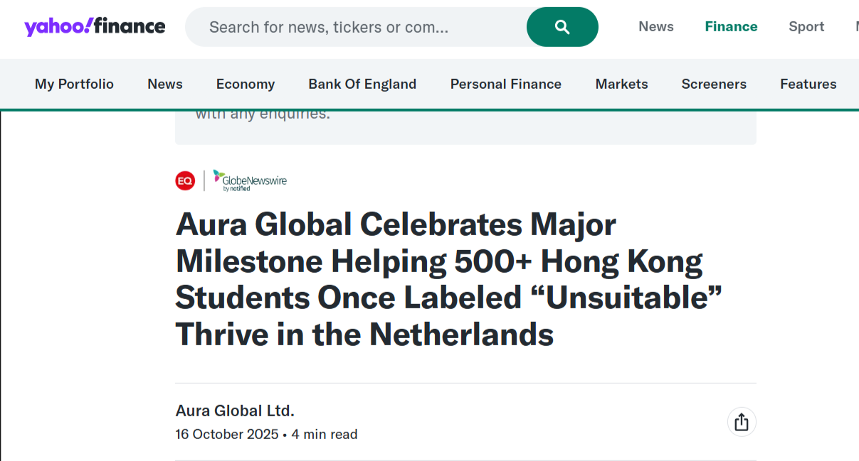 Aura Global Celebrates Major Milestone Helping 500+ Hong Kong Students Once Labeled “Unsuitable” Thrive in the Netherlands 2025 年 10 月 16 日